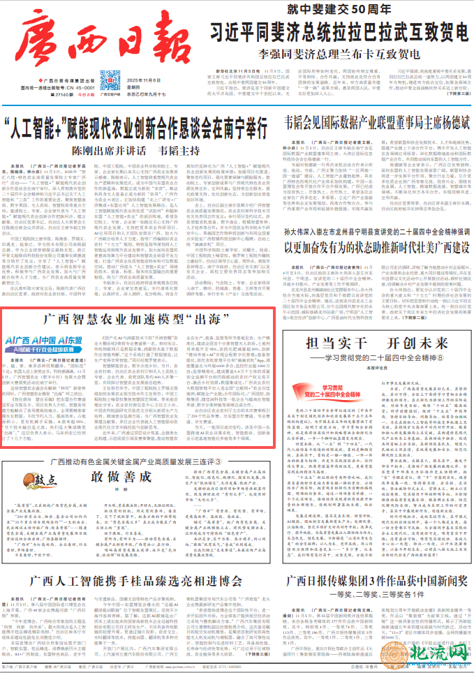 中、越、泰、柬多语种同期翻译,“国际范”十足;机器人送上获奖证书,科技感满满。11月5日,广西智慧农业(数字乡村)发展大会暨创新大赛颁奖活动在南宁举行。 颁奖现场。主办方供图 这场智慧农业盛会在解锁“种田”新姿势的同时,广西智慧农业模型“出海”呼之欲出。 《智在菇房 慧在采摘》把东盟合作赛道冠军证书揽在手。项目负责人介绍,智慧食用菌方舱解决了食用菌栽培痛点,全周期精准掌握生长数据,不但节约人力、提高效率,占地面积小,更有机械手采摘,A菇率超95%。“当下技术输出是主流,我们是大集成模型‘出海’。”这位负责人表示,马来西亚已经预订了十几个方舱。 《国产化AI与鸿蒙技术下的“开鸿智棚”农业大棚系统》荣获专业赛道第一名。相对而言,传统物联网只是数据采集,鸿蒙技术基于数据作出智能判断。“这个系统打通了数据壁垒,让生产变得非常智能。”项目经理罗楚表示。 颁奖仪式现场。主办方供图 智慧赋能农业,数字点亮乡村。当日,农业农村部、自治区农业农村厅相关人士及院士专家、企业代表、获奖团队等约400人齐聚一堂,共同探讨智慧农业发展前沿趋势。 主旨报告环节,中国工程院院士罗锡文围绕加快发展农业低空技术作主旨报告,中国工程院院士喻景权聚焦智慧园艺领域,带来前沿理论分享;农业农村部信息中心主任王小兵、中国农科院副研究员张浩文分别从新质生产力培育、跨境害虫监测方面,为广西智慧农业发展建言献策,多位企业代表就人工智能驱动农业现代化分享实践经验与创新思考。 近年来,广西通过顶层设计筑基、全链条生态构建、示范场景引领及赛事聚能,推动智慧农业在生产、装备、监管等环节落地见效。生产精准化,建成全国首个甘蔗智慧无人农场,土地利用率提升至95%,农药化肥减量超20%,创新“楼房养殖+AI”实现全程数字化管理;装备智能化,依托农机管理平台和“滴滴农机”App,调度覆盖北斗终端6000多台,监控作业超1000万亩;监管精准化,建成覆盖5.4万个主体的质量安全追溯平台和四级联动的农村产权交易平台,激活乡村资源;数据集成化,广西农业农村大数据管理平台入选全国“互联网+”农业百佳案例,赋能全产业链;合作国际化,广西国控、扬翔集团、捷佳润科技等一批企业与越南在智能养猪、数字甘蔗种植等领域达成合作。 由自治区农业农村厅主办的本次赛事吸引了239个作品参赛,分东盟合作赛道、专业赛道、学生赛道。 当天,一批项目成功签约,涉及中国—东盟跨境AI农业决策系统、智能菇房、创新渔业示范基地智能化养殖等多个领域。 报纸版面截图。 |