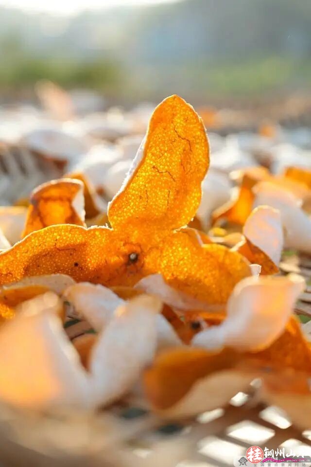 正在晾晒的浦北大红柑果皮,将加工为浦北陈皮。李卓然 摄