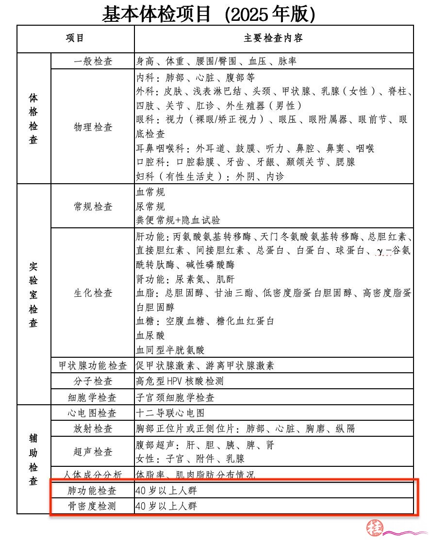 : 国家卫健委不久前发布了《成人健康体检项目推荐指引(2025年版)》,明确推荐了40岁以上必做的两项检查。这两项就是——肺功能检查、骨密度检查。 ...