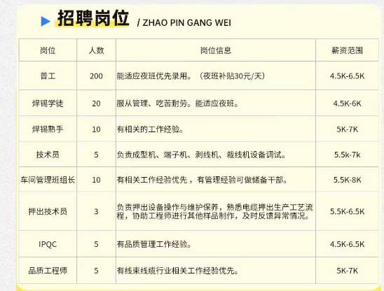 顶 山围玩具厂招:熟手喷油工6人,工资计件,5500元左右 移印工5人,工资计件,工资4500元左右 收货员(验货)1人,工资13元一小时,包吃中,晚两餐 工作地址:山围村委会旁电话