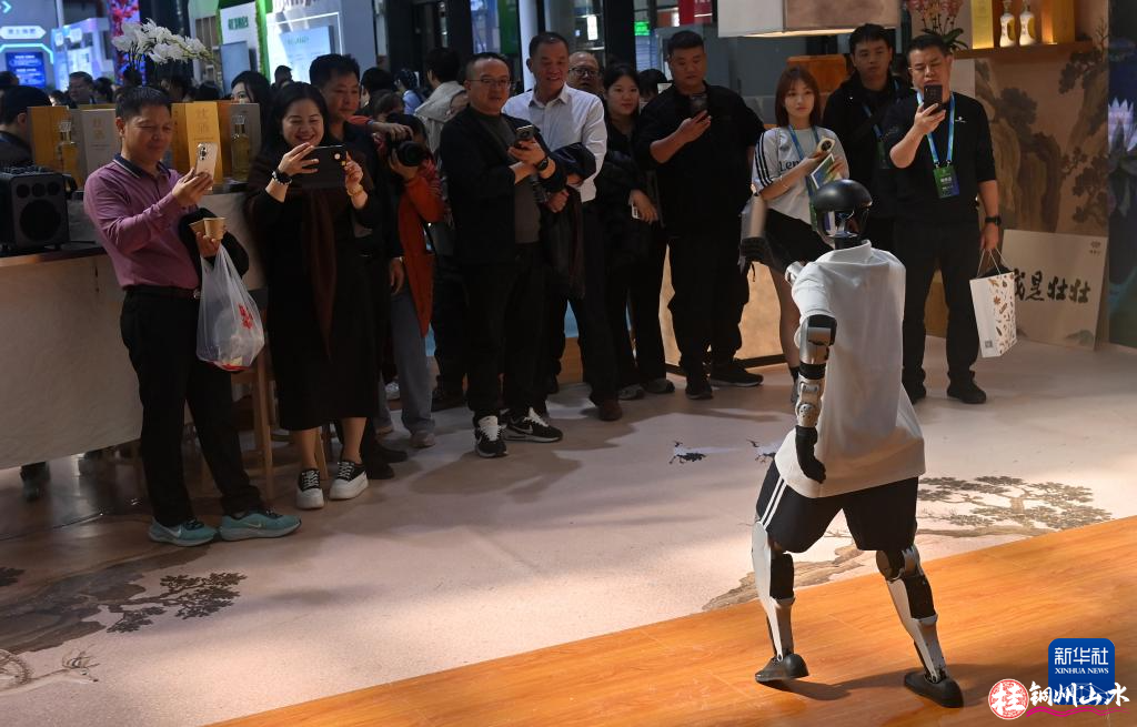11月22日,在广西南宁国际会展中心,人们在展览现场观看机器人表演。
