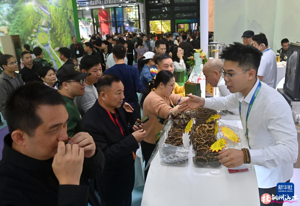 11月22日,在广西南宁国际会展中心,人们在展览现场参观选购。